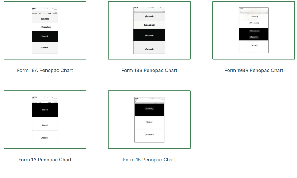 Penopac Charts는 침투 시험(penetration test)과 불투명도 시험(opacity test)의 테스트 영역 및 기능을 결합한 차트